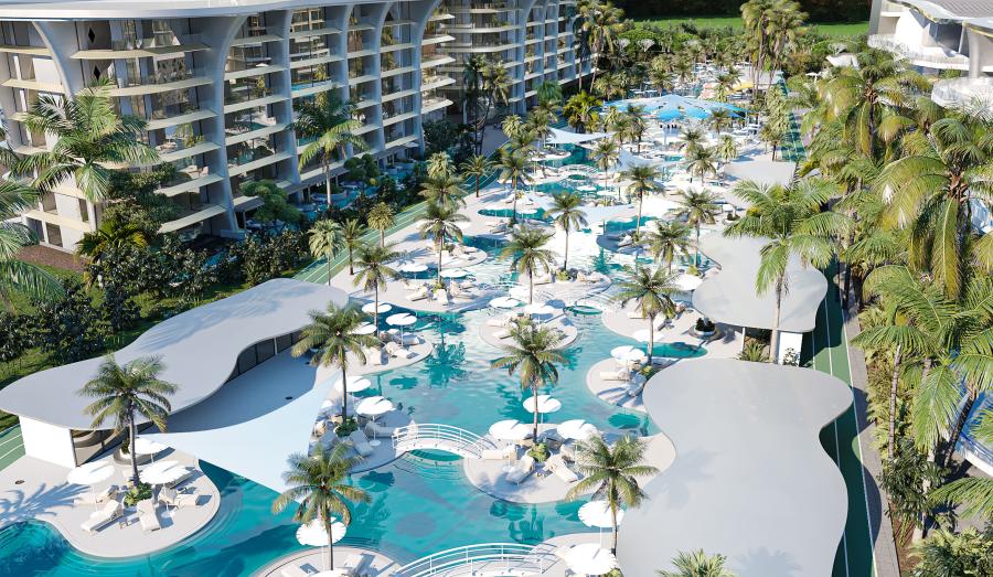 The area is renowned not only for its pristine beach but also for its numerous beach clubs with tennis courts and golf courses, making it a wonderful destination for a prestigious luxury vacation. Five-star hotels are located near the complex, driving up the rental prices for apartments and making this location highly sought after for luxury vacations.