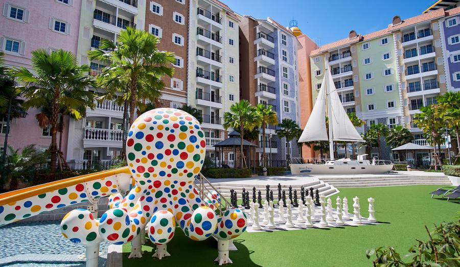The complex is located in the Na Jomtien area of Pattaya, close to the city center and 300 meters from the beautiful white sandy beach of Jomtien.