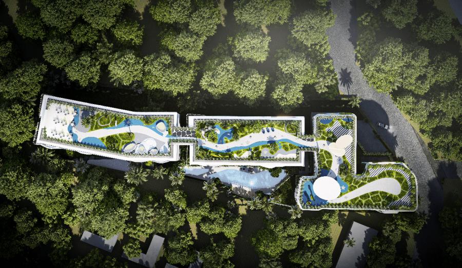 Vega consists of three seven-story buildings. The residential complex features a contemporary design with panoramic glazing and landscaping elements that reflect its philosophy of unity with nature and harmoniously blend into the surrounding tropical environment.