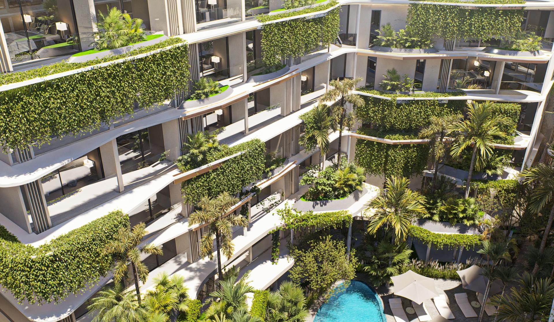SunHills Layan consists of several buildings, each designed in a minimalist style with green facades. The project's architecture is inspired by natural lines, allowing it to blend harmoniously with the surrounding landscape. The complex is ideal for both vacation rentals and long-term residences, thanks to its well-developed infrastructure and convenient location.