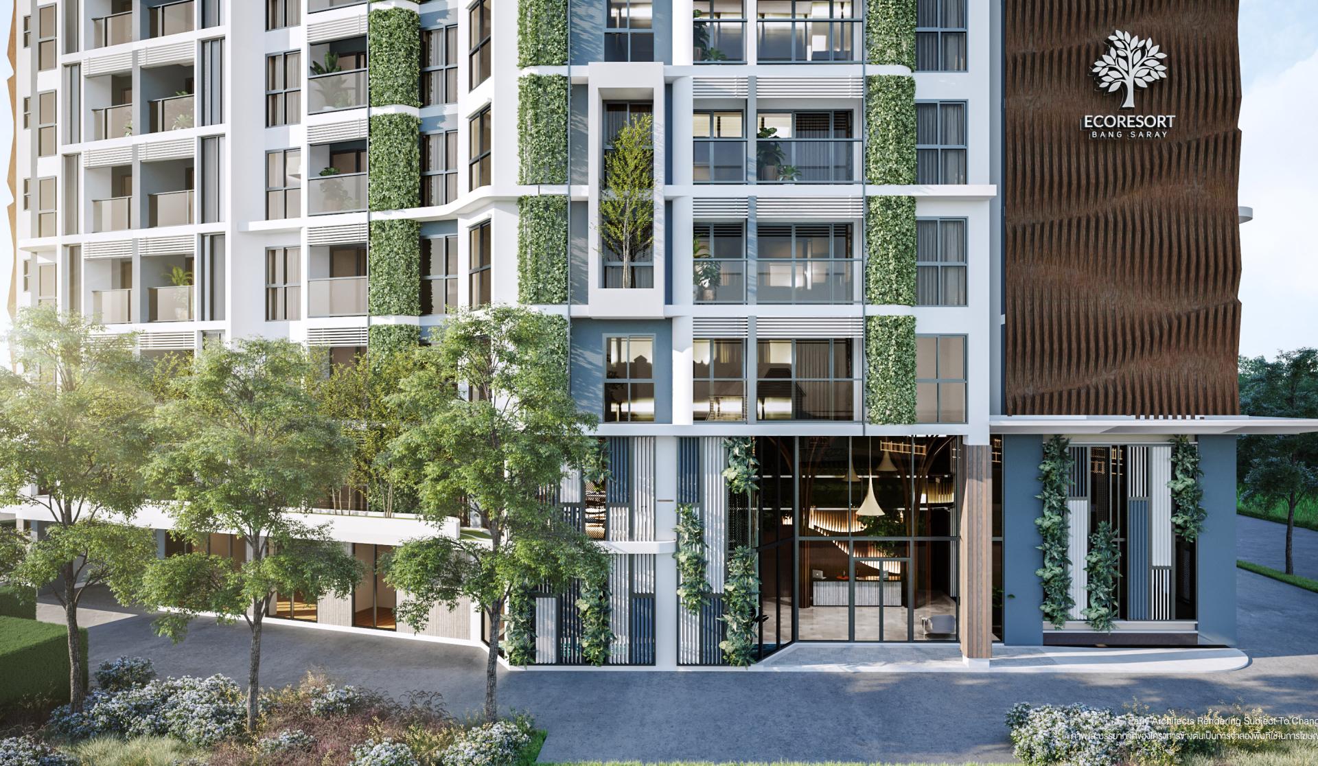 Eco Resort Bang Saray is a unique residential complex designed with an emphasis on eco-friendliness, energy efficiency, and comfort. Developed by Sisaran Development, a developer specializing in innovative and sustainable residential solutions, the project is comprised of two 8-story buildings housing 262 apartments. Its location in Bang Saray, Pattaya, makes it an ideal choice for those seeking a home surrounded by nature yet with convenient access to city amenities.