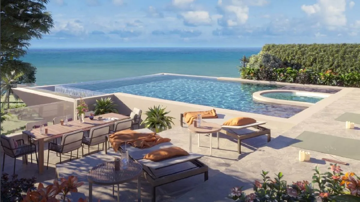 Свой бассейн и джакузи: В каждой квартире есть терраса, где можно поплавать, глядя на океан.