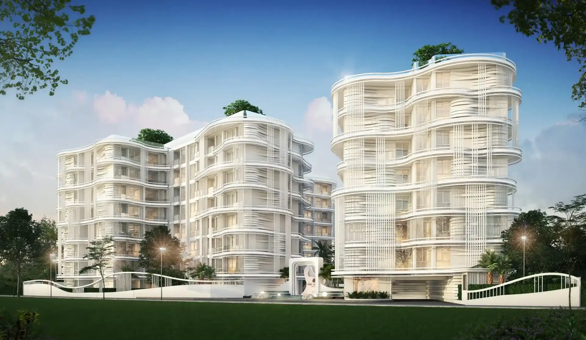 Комплекс включает 8 малоэтажных зданий по 8 этажей, организованных по курортному принципу с зонами отдыха, садами и бассейнами.